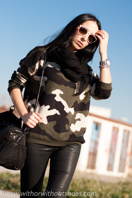 para empezar la semana os traigo un look con un jersey en el estampado estrella de la tamporada, el camuflaje. Por ahora me lo habíais visto en pantalones (AQUÍ) y sobrecamisa (AQUÍ), pero hoy os lo muestro en el jersey. La verdad es que me gusta bastante la tendencia camo, y ya os adelanto que no será la última prenda que me veréis con ella.